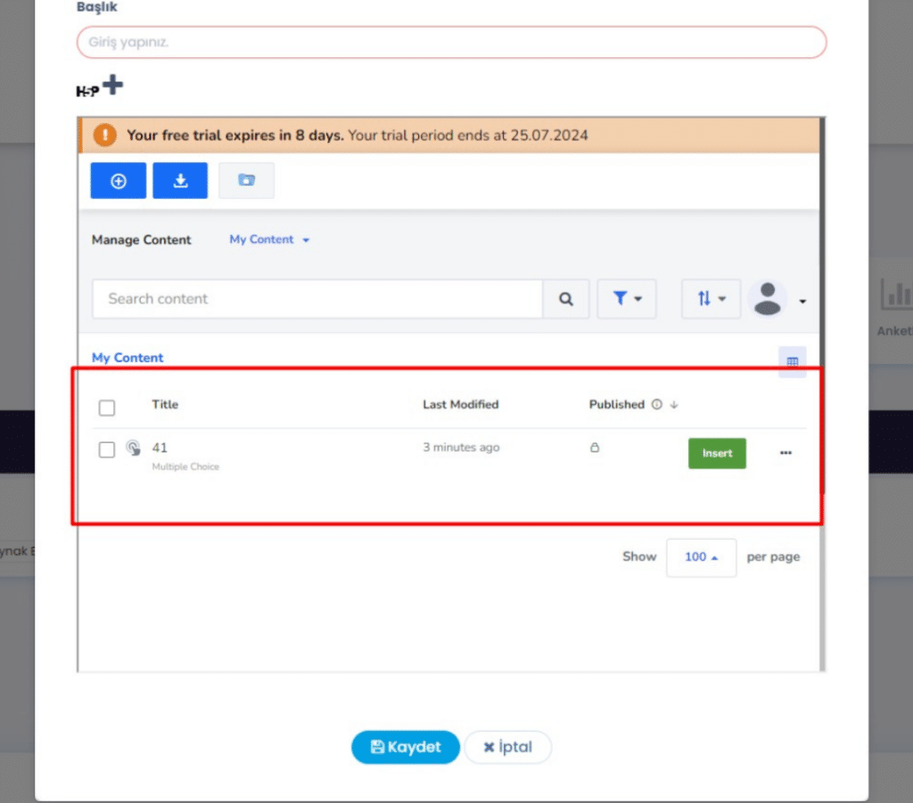 Vedubox, modern eğitim ihtiyaçlarını karşılamak üzere geliştirilmiş bir LMS platformudur ve LTI standardını kullanarak kullanıcılarına bu konuda bir deneyim sunar. Vedubox’a entegre edilen araçlardan biri de H5P içerik üretme aracıdır. LTI altyapısı sayesinde, Vedubox kullanıcıları H5P’yi sorunsuz bir şekilde kullanarak, platformlarına zengin ve etkileşimli içerikler ekleyebilirler. Bu sayede, eğitim materyalleri daha etkileyici hale gelir ve öğrencilerin öğrenme deneyimi daha da zenginleşir.