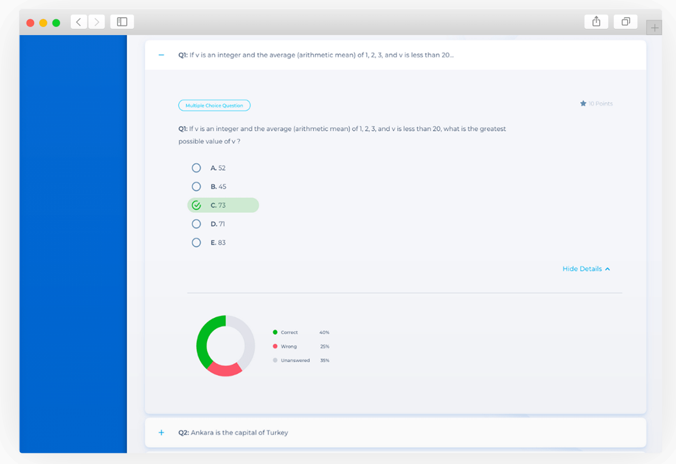 Online sınav ve test düzenlemek için soru havuzları ve bu soruları kategorilerle düzenleyerek özgün soru bankaları oluşturun. Sorularınız çoktan seçmeli, açık uçlu, doğru – yanlış, eşleştirme gibi farklı formatlarda olabilir.