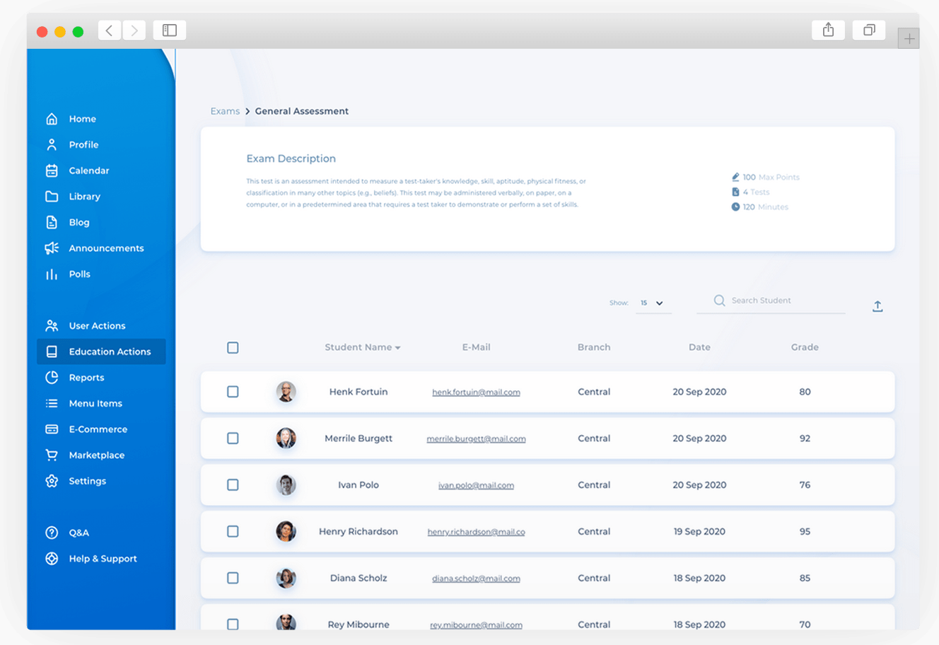 Detaylı sınav raporları ile vakit kaybetmeden sınavları anlık otomatik olarak değerlendirin. Kullanıcıların ilerlemelerini takip edin ve sistem üzerinden paylaşın.
